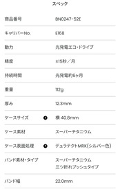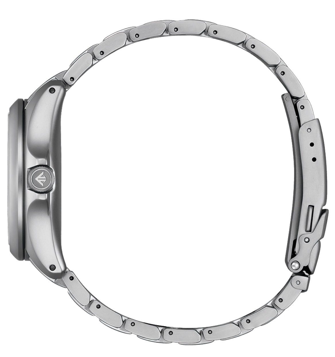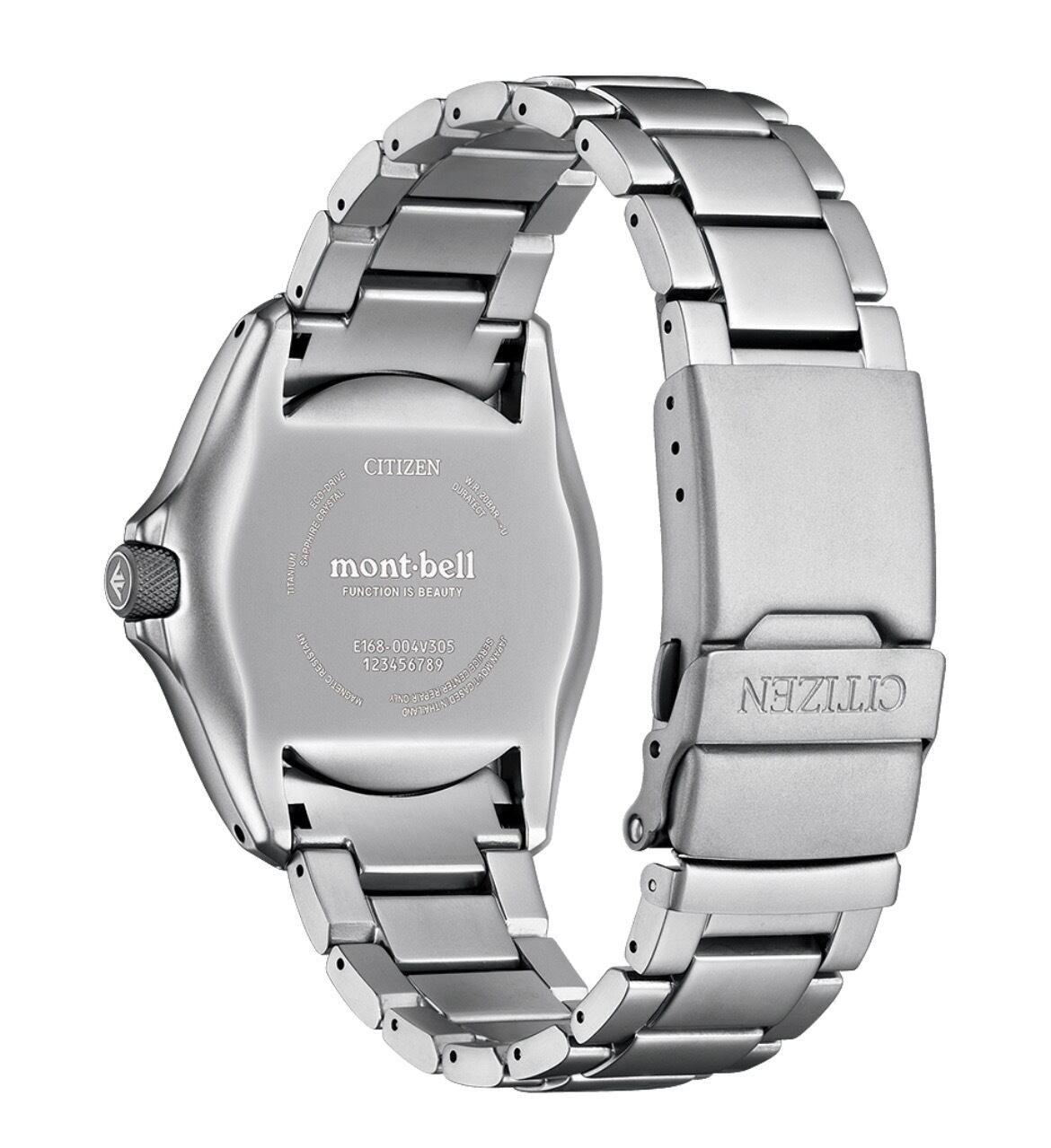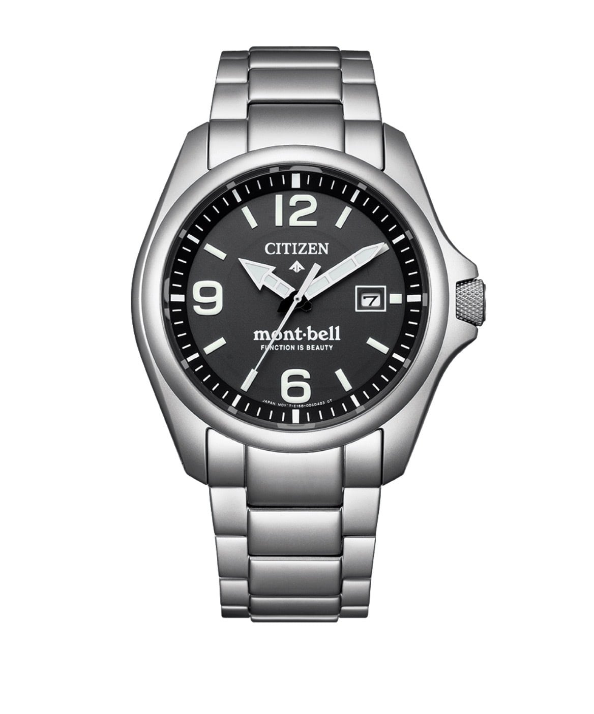 ダイバーズウオッチ用に開発されたCal.E168を搭載。アウトドアのハードな環境にも耐え抜くタフさ、昼夜問わない時刻の見やすさ、操作の簡単さといった、優れた実用性を備える1本です。ケースとバンドには打ちキズにも強いデュラテクトMRKを施しています。また、衝撃で外れないようメタルバンドにはダブルロックバックルを採用。裏ぶたレス構造のケースバックには、モンベルのブランドロゴをレーザー刻印。CITIZEN×mont-bellのロゴが入った専用ボックス付きです。