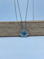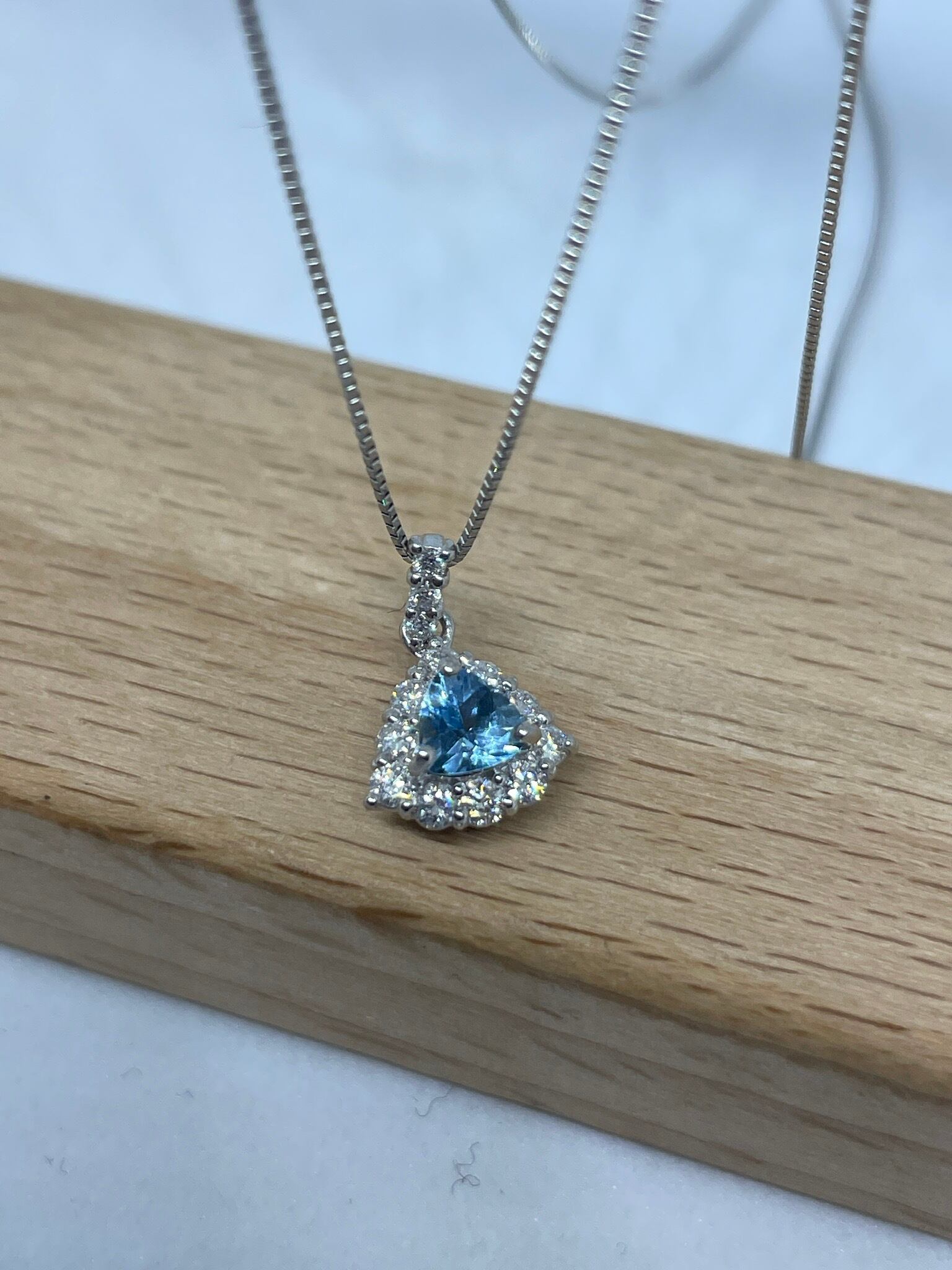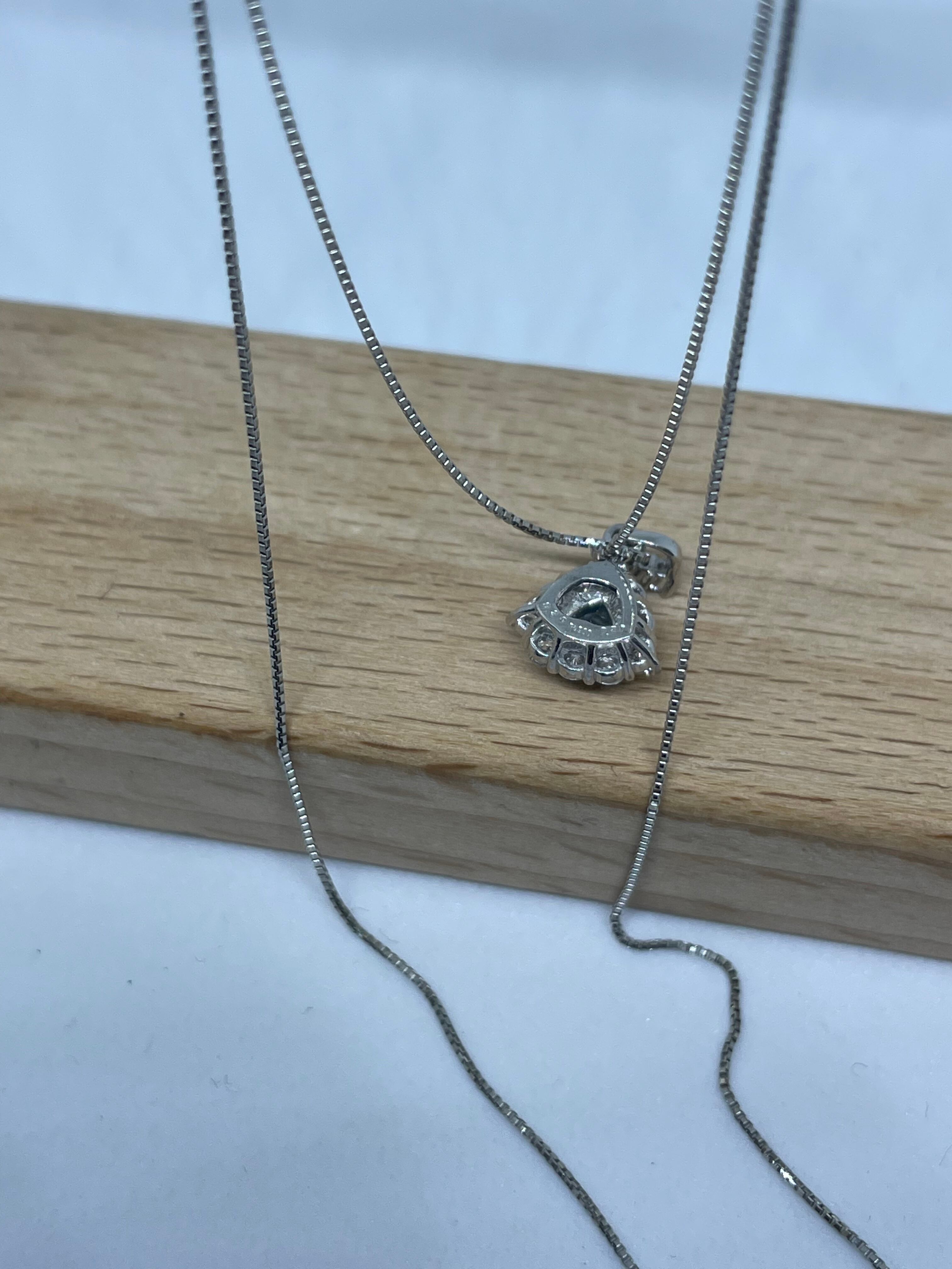 プラチナ枠で作った、アクアマリンとダイヤモンドのネックレスです。