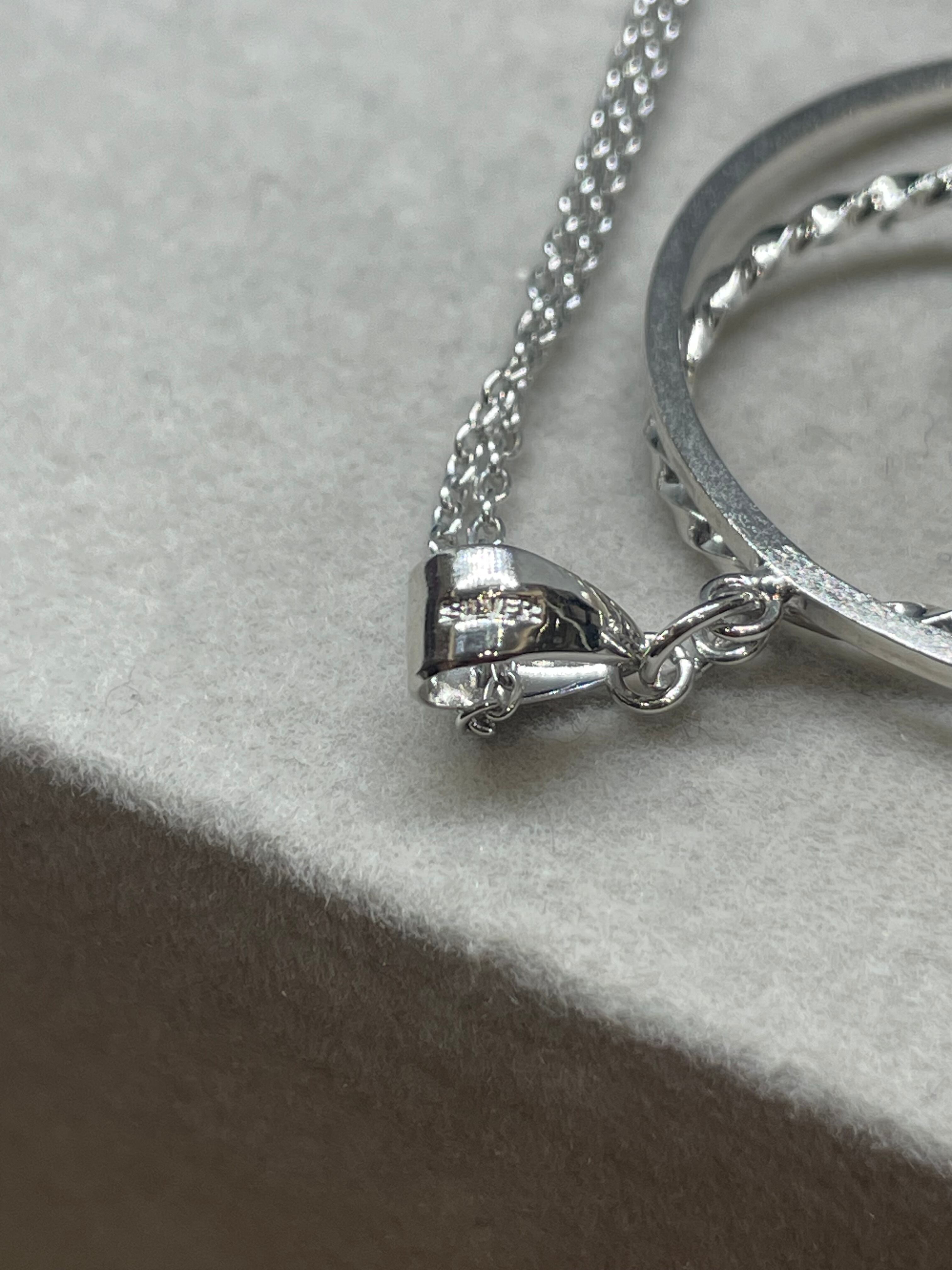 大小の捻ったようなデザインのサークルと、艶消しのサークルが質感の違いが楽しめるネックレスです。